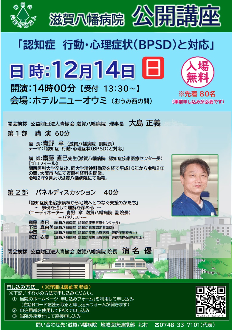講 師:齋藤 直巳 先生(滋賀八幡病院 認知症疾患医療センター長)